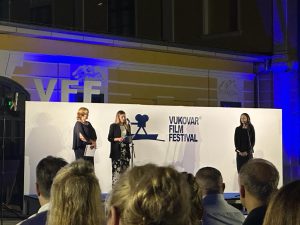 Katja Kuceja, Leiterin der Kulturabteilung der Deutschen Botschaft, begrüßte im Namen des offiziellen Partners des Festivals – der Bundesrepublik Deutschland – die Teilnehmer, drückte ihre große Zufriedenheit mit der erzielten Zusammenarbeit aus und eröffnete das 17. Vukovar Film Festival.